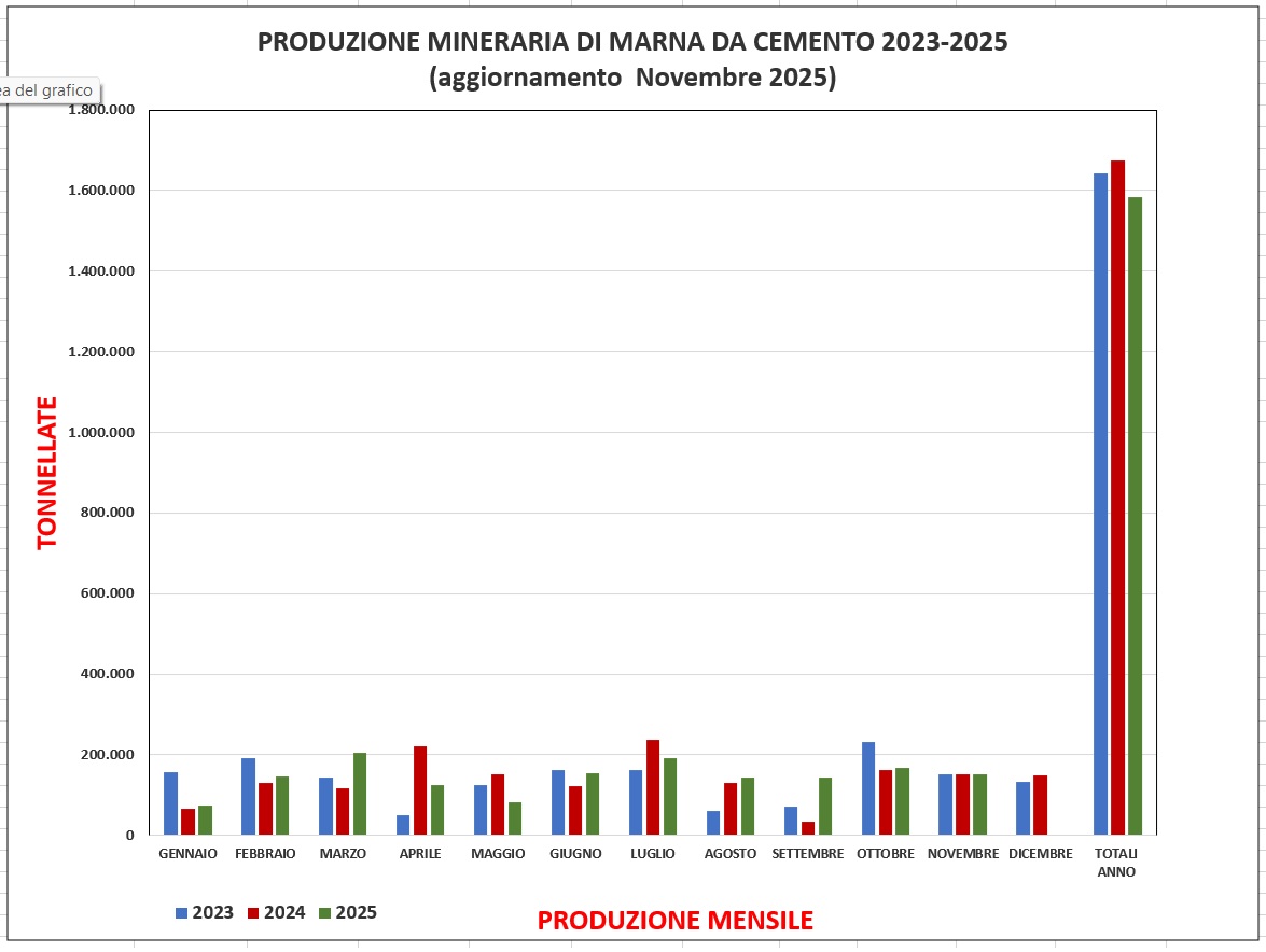 Con l'esaurimento dei giacimenti di "lignite", per ultimo Pietrafitta nel Comune di Piegaro, la "marna da cemento" rappresenta l'unico minerale di 1^ categoria (miniera) oggi coltivato nel territorio della regione Umbria.