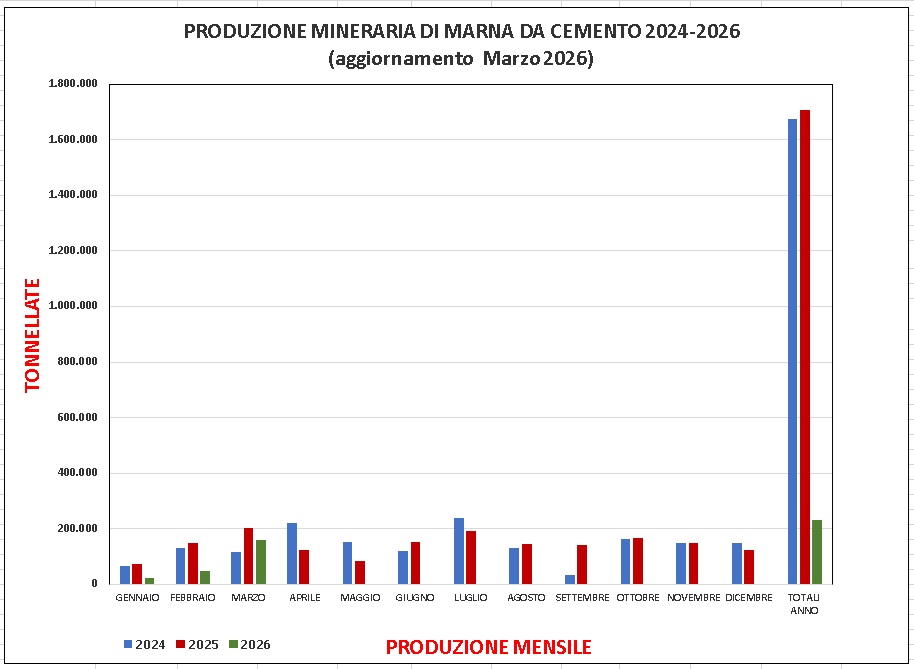 Con l'esaurimento dei giacimenti di "lignite", per ultimo Pietrafitta nel Comune di Piegaro, la "marna da cemento" rappresenta l'unico minerale di 1^ categoria (miniera) oggi coltivato nel territorio della regione Umbria.