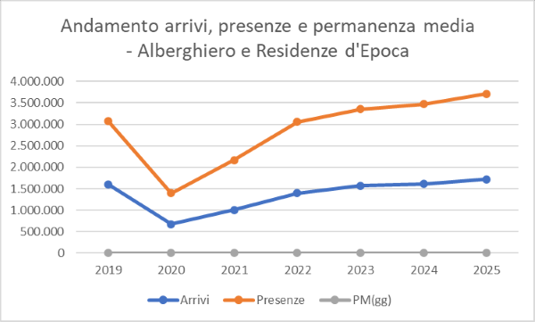 Nel 2025 negli esercizi alberghieri e Residenze d’epoca si sono registrati