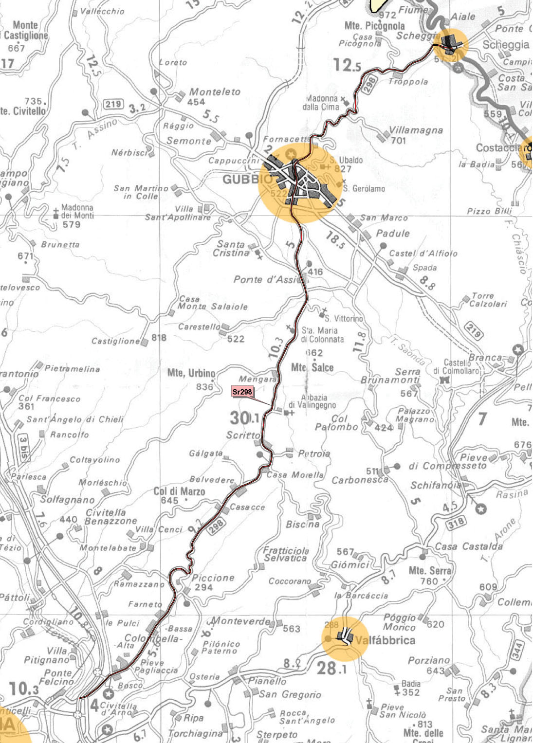 - Progressiva finale: Km 42+500 (in Provincia di Perugia)
