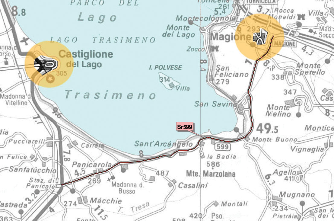 - Innesto con la S.R. n.71 (al Km 94+500) in loc. Muffa (Comune di Castiglion del Lago)