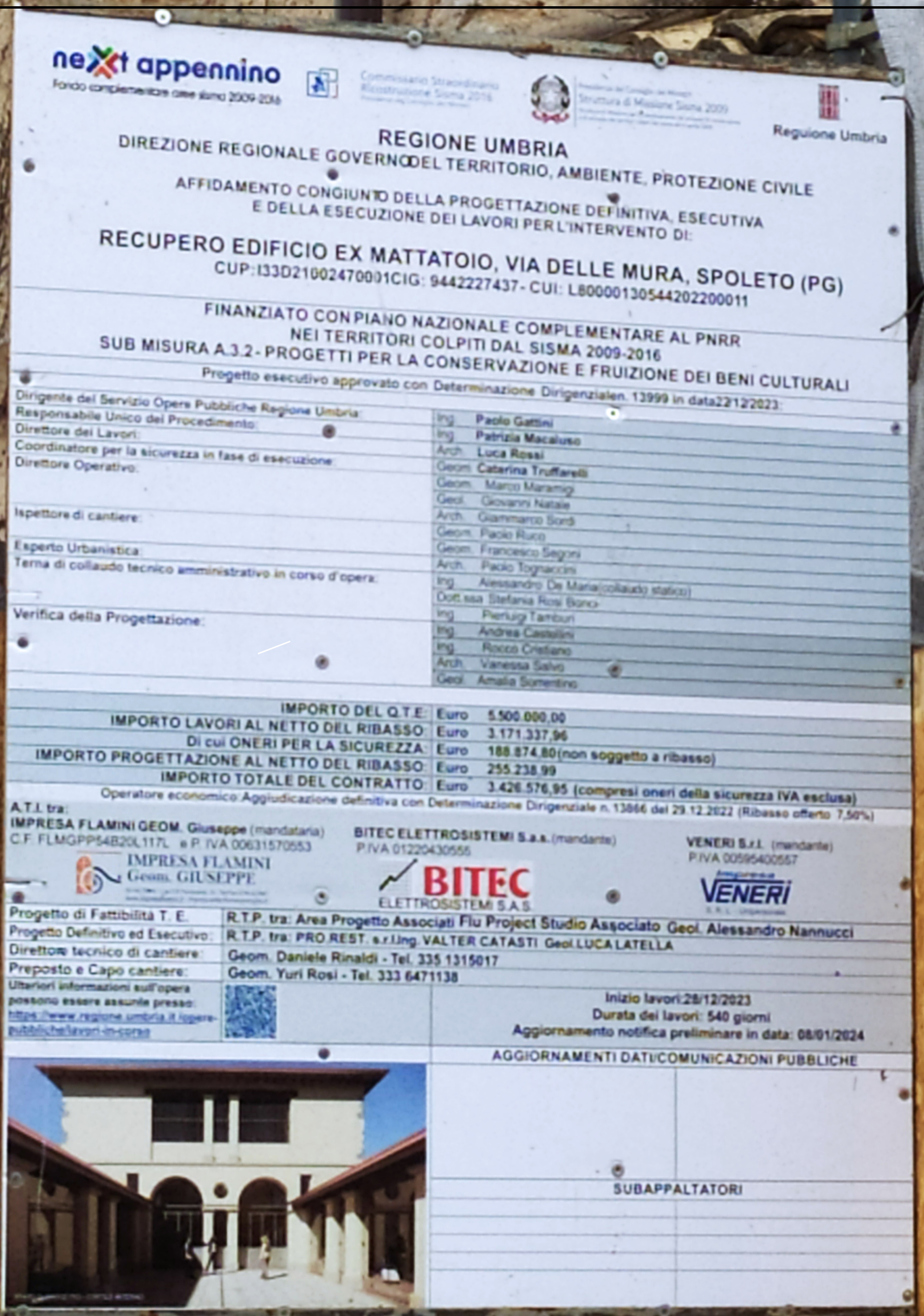 Il progetto l’ampliamento del centro operativo di Spoleto per la conservazione, manutenzione e valorizzazione dei beni storico-artistici e archivistici dell’Umbria. Iintervento n. 1 "RECUPERO EDIFICIO EX MATTATOIO, VIA DELLE MURA, SPOLETO (PG)"