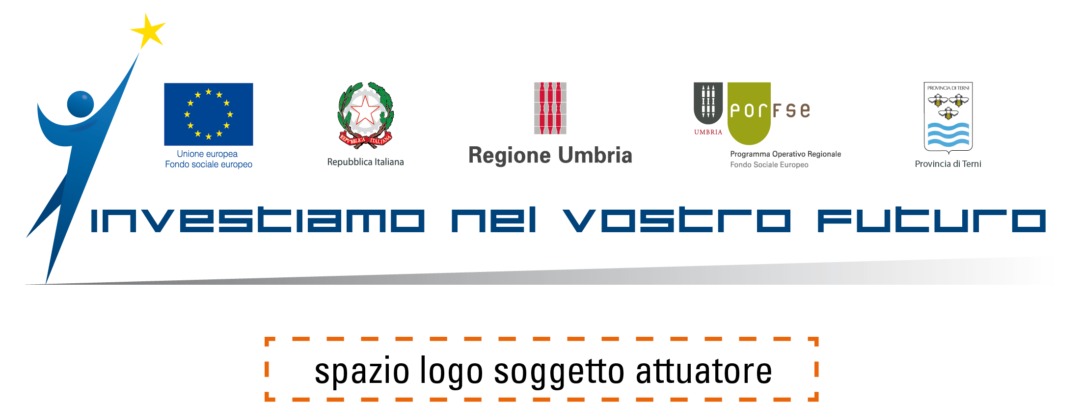 - In basso a destra va inserito il timbro "Garanzia Giovani in Umbria", che è l'altro elemento grafico obbligatorio.